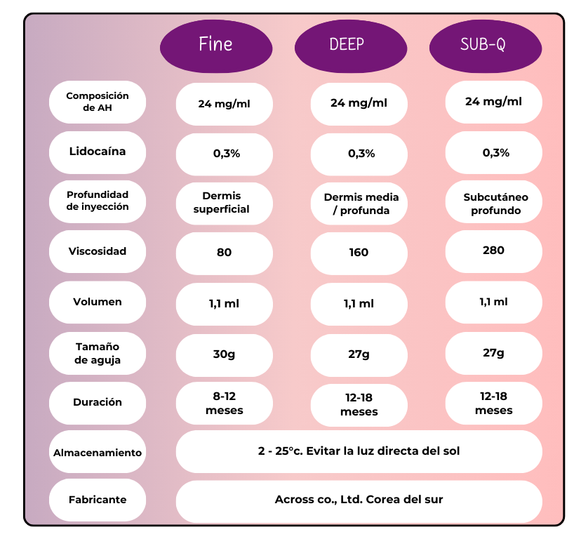 Es una gama de rellenos dérmicos a base de ácido hialurónico reticulado de origen no animal, elaborado para corregir los signos del envejecimiento.